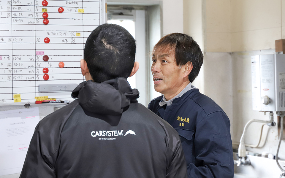 大変なことも多いですがそれを乗り越えたとき、完成したとき、営業所に車を収めたとき、そのときの達成感と、また、営業所から「ありがとう」と言われる感謝の一言が私の中ではやりがいとなっています。