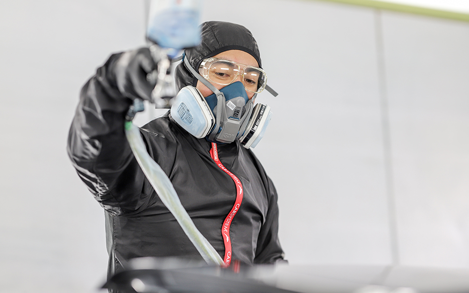 きれいにやって、塗料と塗装とクリアを塗って終わって、何も擦り傷とか見えないようにする。限りなく工場に入荷する前の状態に戻すことを目標にしています。