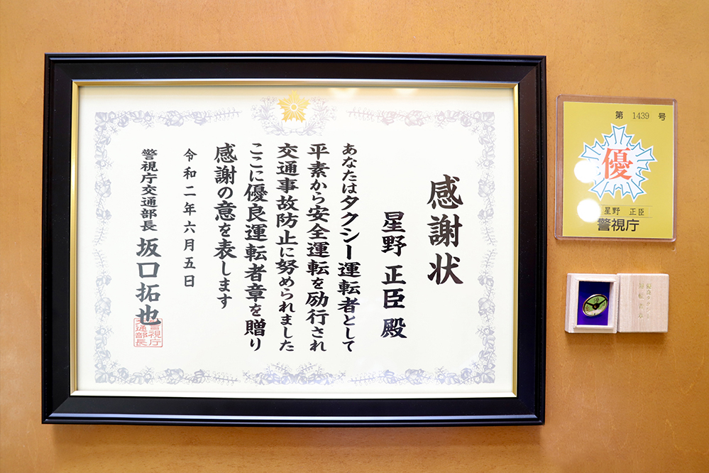 令和2年6月5日付で警視庁交通部長より感謝状を授与いたしました。