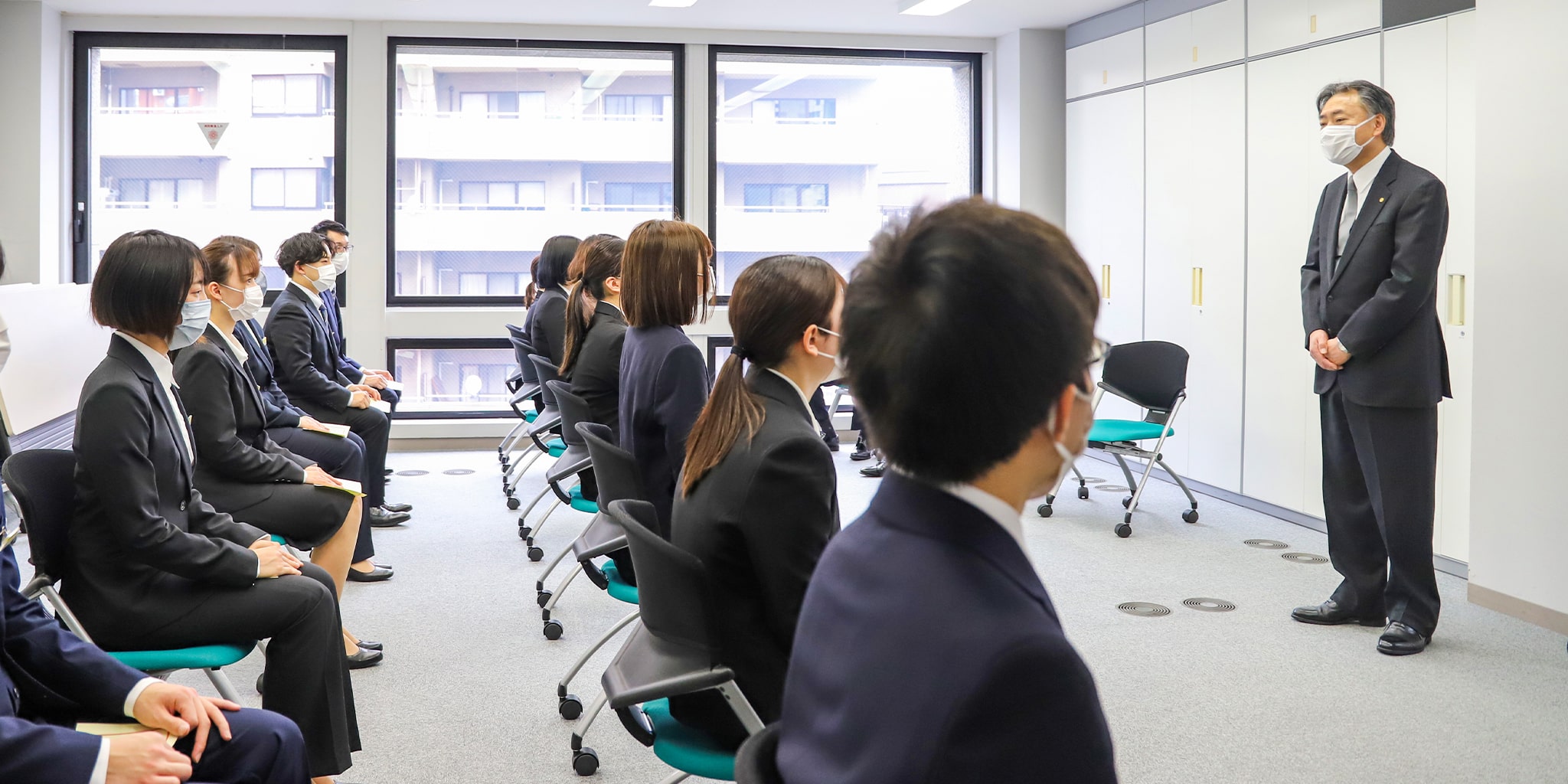 入社式後は、コンプライアンス研修やビジネスマナー研修など新入社員研修を行います。
