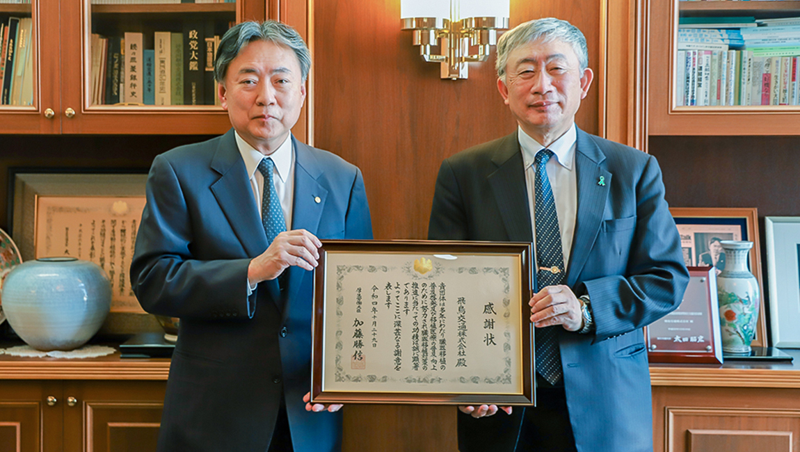 通常、医療関係者の表彰が多い中での飛鳥交通の表彰は、以下のようなこれまでの継続的な取り組みが評価されたものです。