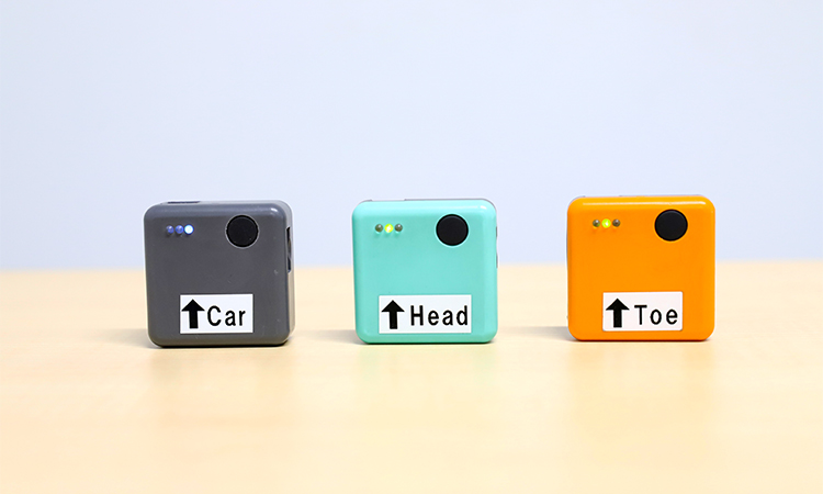 GPSと連動した3つのモーションセンサーのことです(下部の写真参照)。車、頭、足の3か所に取り付けて走行し、ドライバーの確認行動・減速行動・車速や位置情報など「走行データ」を計測することが可能です。