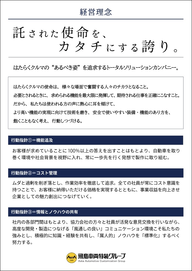 飛鳥車両特装グループ|経営理念制定のお知らせ