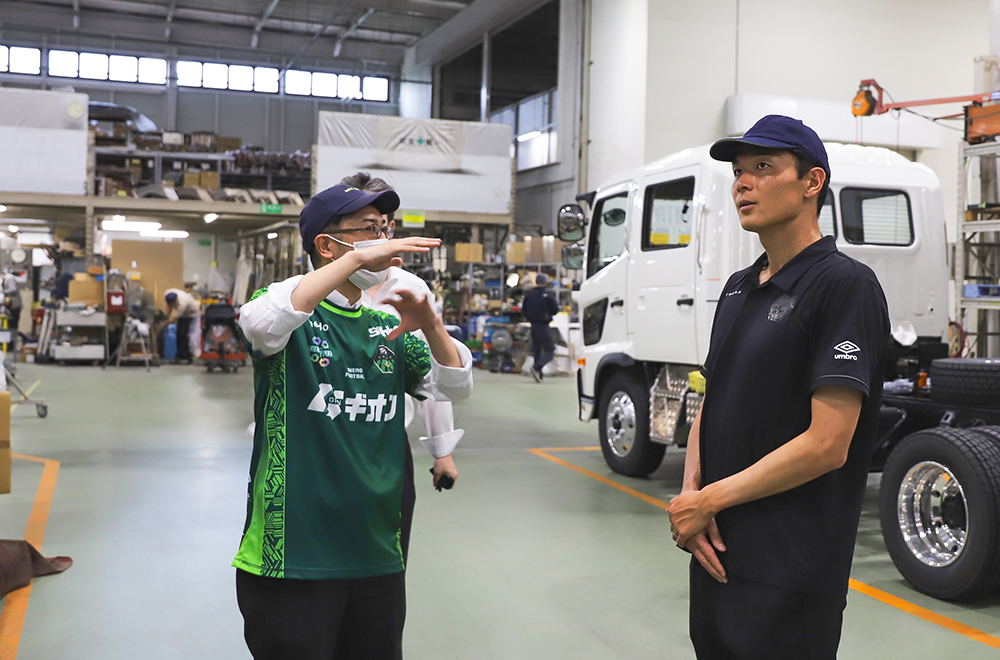 飛鳥車両特装グループ|Jリーグ SC相模原の瀬沼 優司選手が相模原工場に来社されました