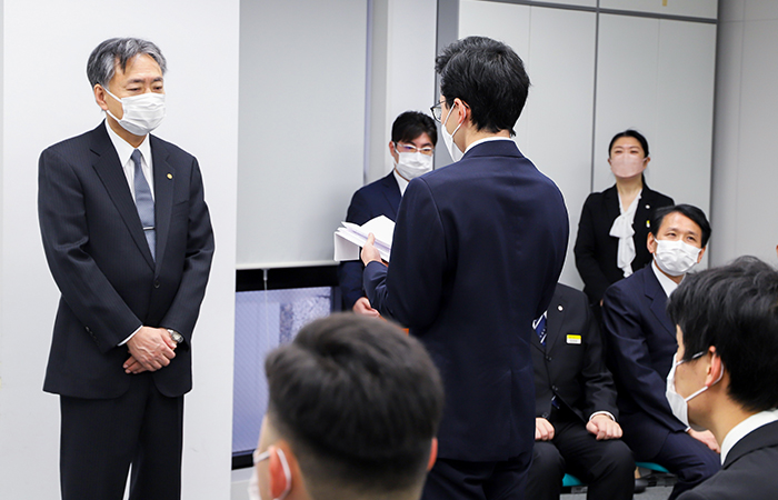 入社式後は、コンプライアンス研修やビジネスマナー研修など新入社員研修を行います。