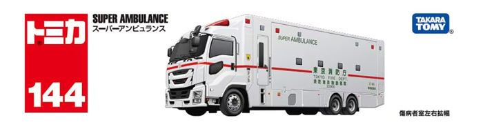 この度、株式会社タカラトミー様より「ロングタイプトミカ No.144 スーパーアンビュランス」として発売されることになりました。