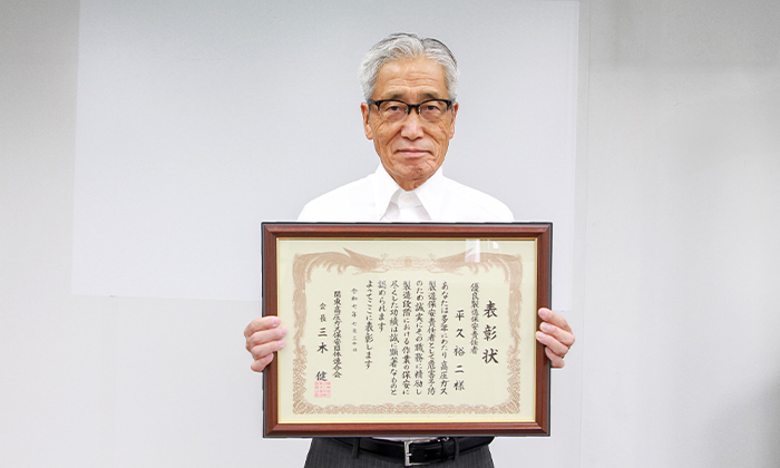 この表彰は、高圧ガスの製造・保安において長年にわたり安全確保と業界の発展に貢献した個人に贈られるものです。