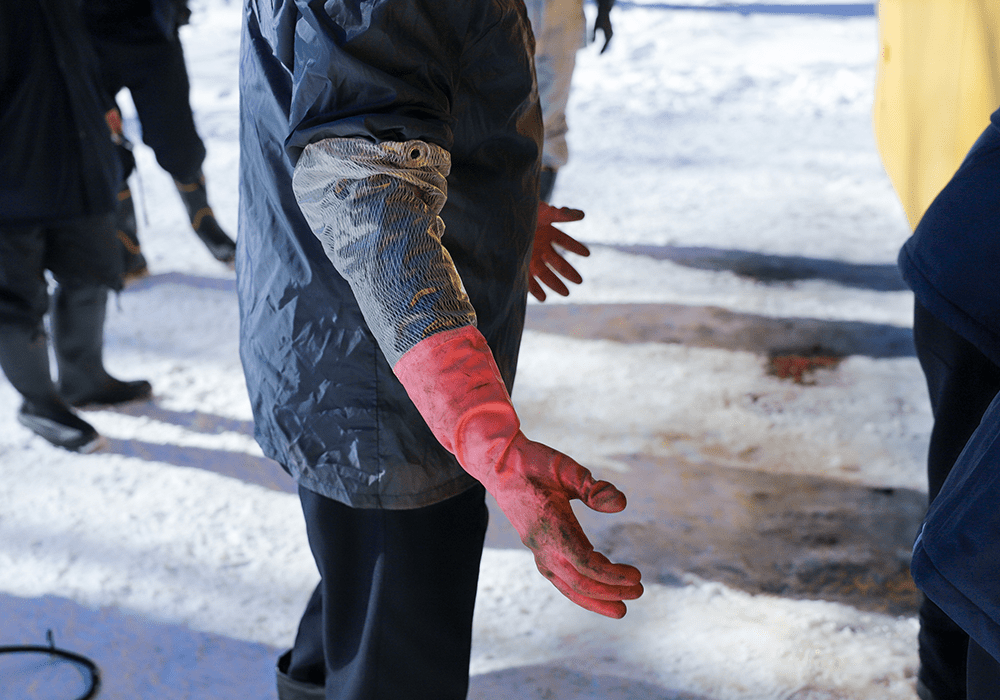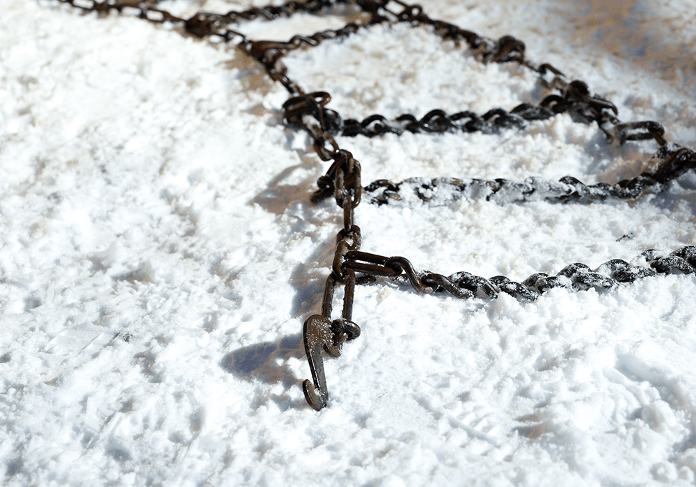 雪山研修・タイヤチェーンの脱着訓練を実施