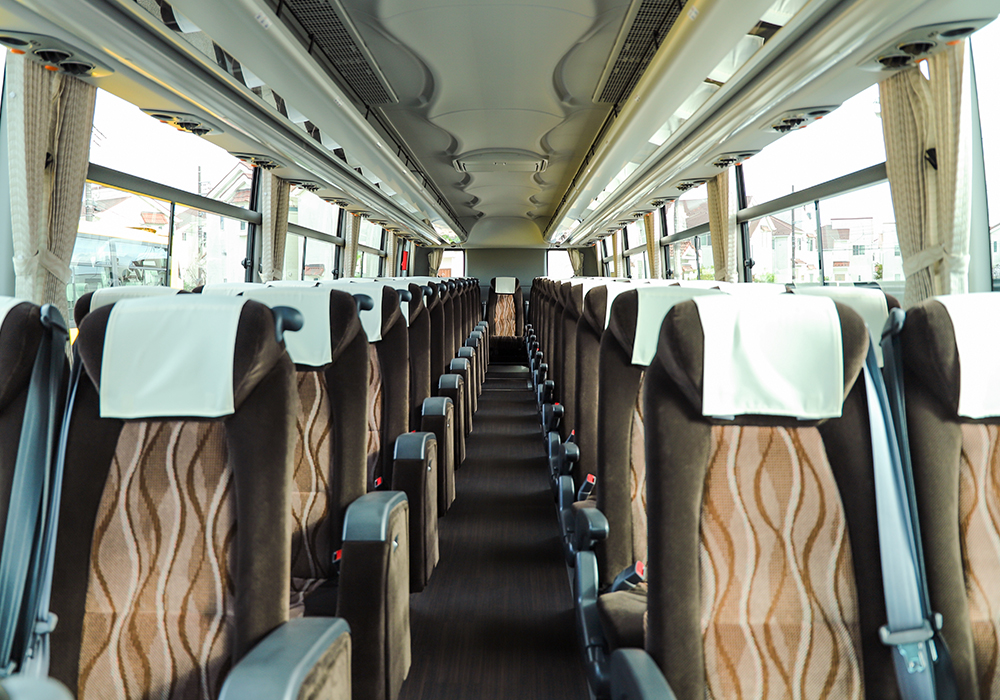 ①『お客様の快適な移動時間』をご提供する事を目的とし、上級グレードの座席を採用いたしました。過去に使用していた座席より厚みがあり形状が異るため、ご乗車中の疲れが軽減されます。