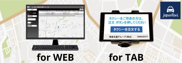 用途に合わせ、「JapanTaxi」アプリ "for WEB" と "for TAB" の2種類がございます。