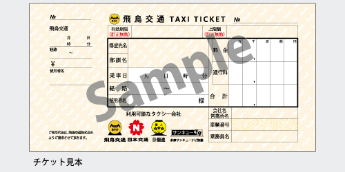 この度、飛鳥交通グループでは、日本交通グループでも利用可能なタクシーチケットを発行いたします。