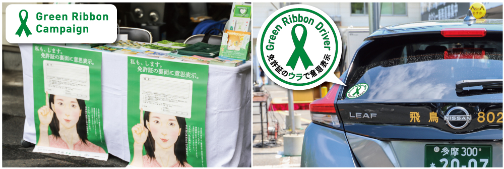 画像左:公益社団法人 日本臓器移植ネットワーク/グリーンリボンキャンペーンの展示ブース