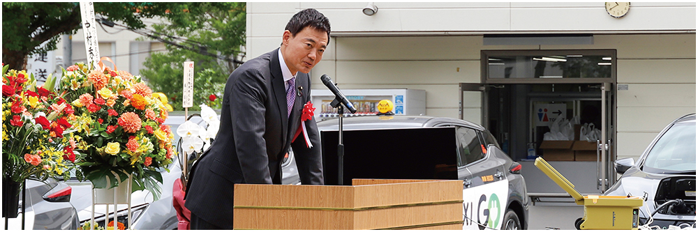 また、多摩市と飛鳥交通ニュータウン株式会社は同日から効力を発効する「災害時給電支援に関する協定」を締結しました。大規模災害等により停電が発生した際には、電力供給が必要な場所へ電気自動車を派遣し、緊急時の電力インフラとして、タクシーから電力を供給するボランティア活動です。近く、町田市とも同様の協定を締結する見通しで、180台というEV車両のネットワークを活用し、各地の自治体との連携についても積極的に拡大して参ります。