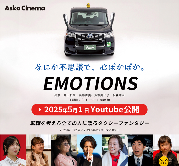 飛鳥交通グループでは、タクシードライバー採用の新たな取り組みとして、自社企画・制作のWEBシネマシリーズ「ASKA CINEMA」を制作。