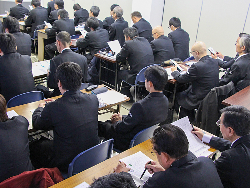 全乗務員を対象に「月例教育」として毎月研修会を開催しております。研修の内容は安全関係をはじめタクシー業務の全般について行います。