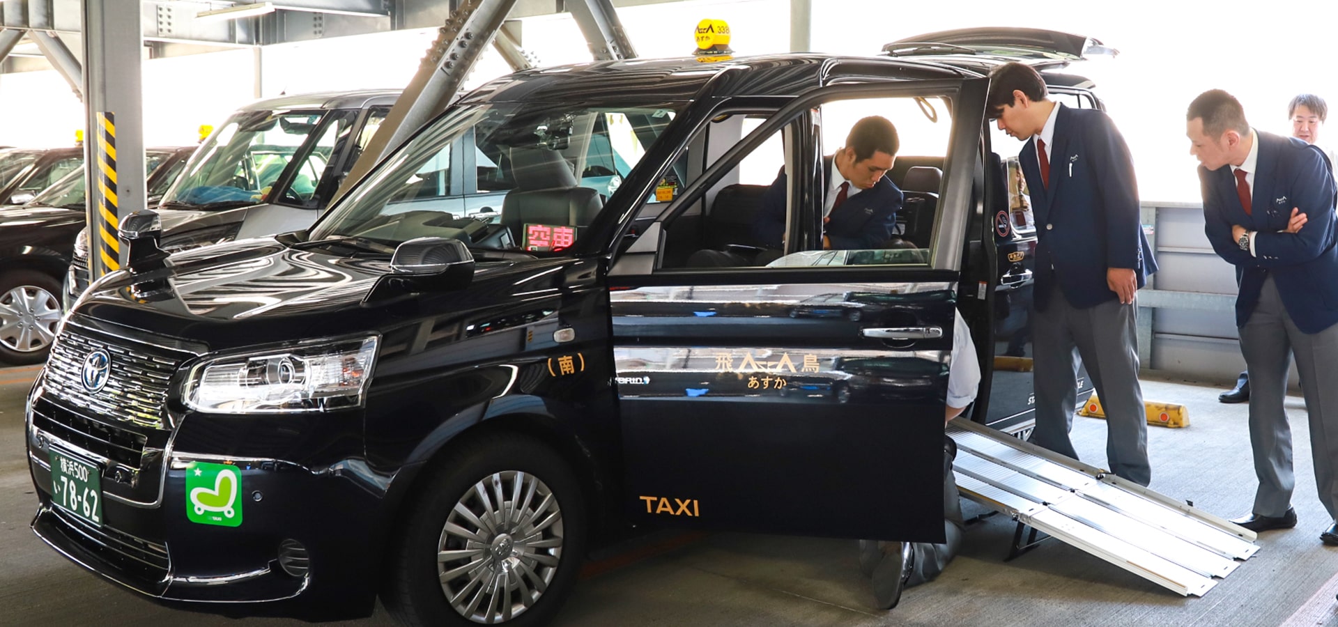 ジャパンタクシーの仕様や車載装備の説明、その他、車いすで実演するUD研修などを行います。